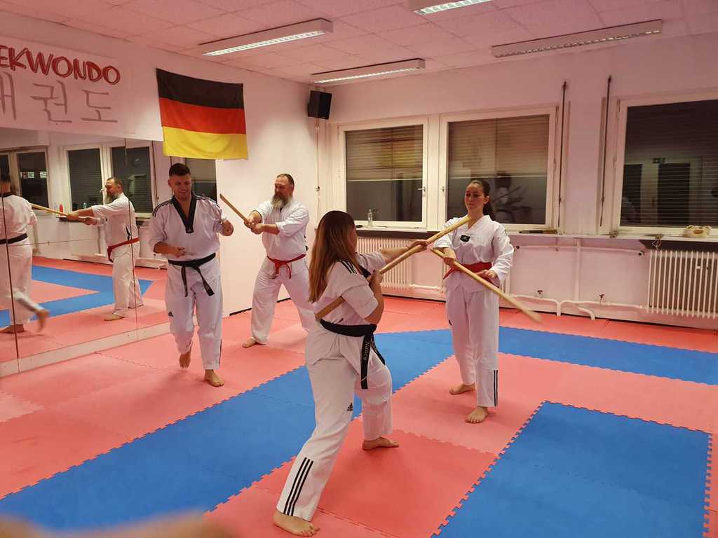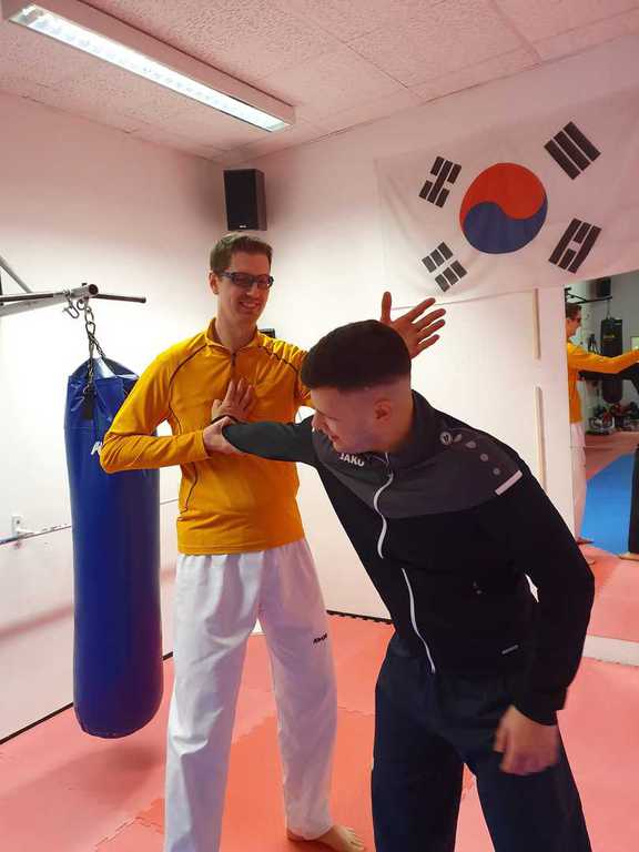 Neben dem Taekwondotraining, bieten wir Freitags auch nochmal ein seperates Selbstverteidigungstraining an. Hier wird das Selbstbewusstsein und die Selbstverteidigung in Not Situationen explizit trainiert.